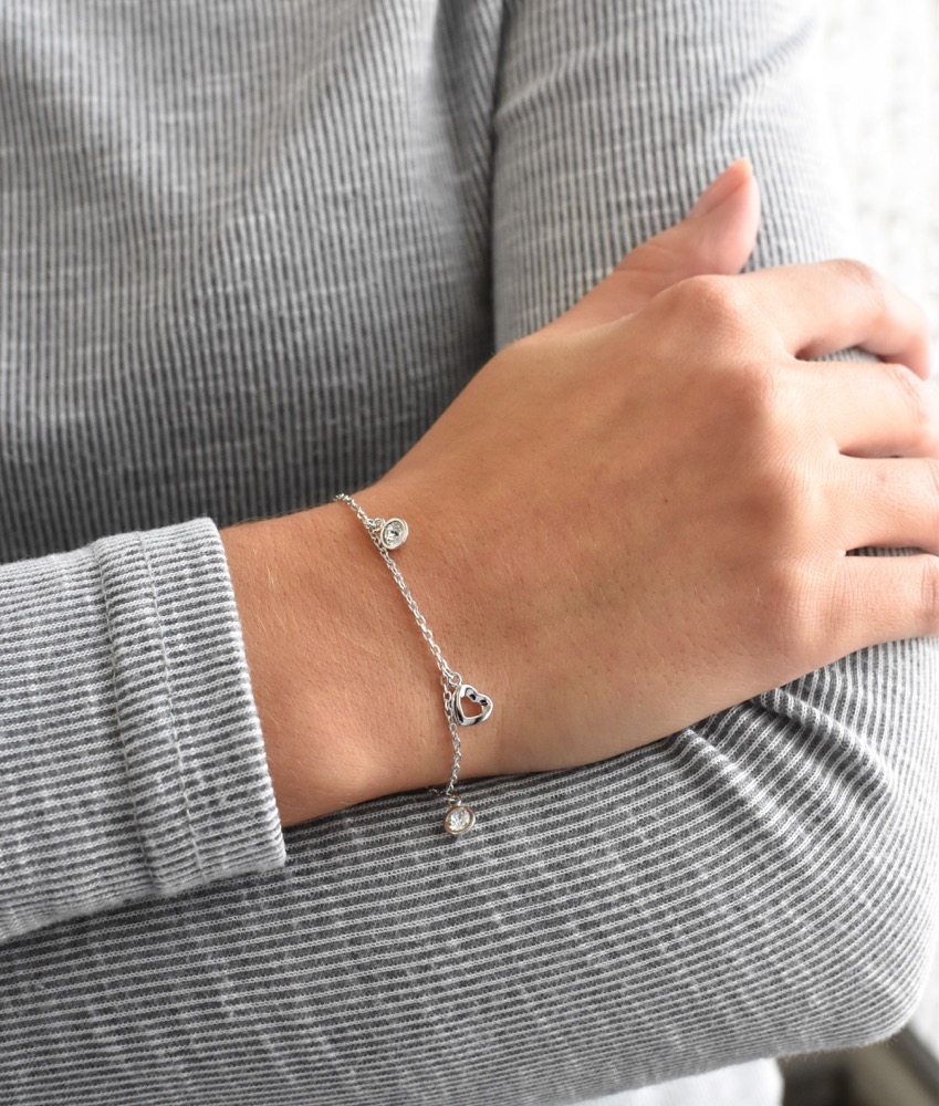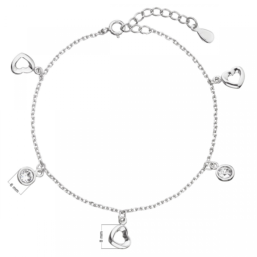 Parametre strieborného náramku so Swarovski kryštálmi biele srdce 33110.1
