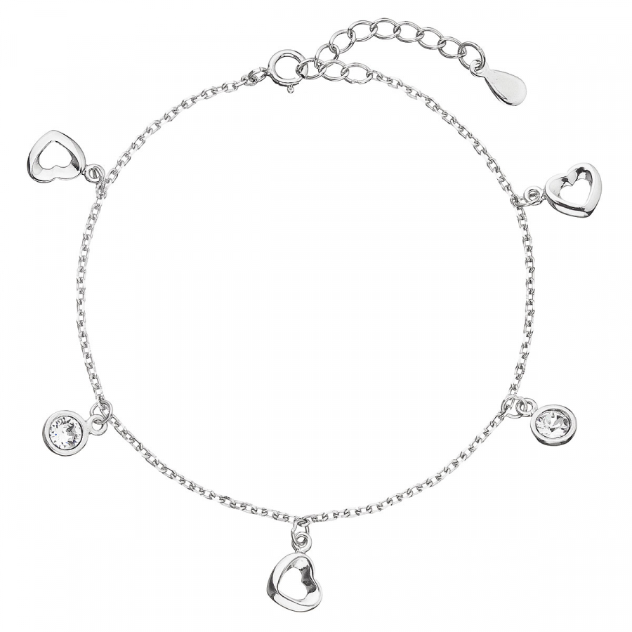 Strieborný náramok so Swarovski kryštálmi biele srdce 33110.1