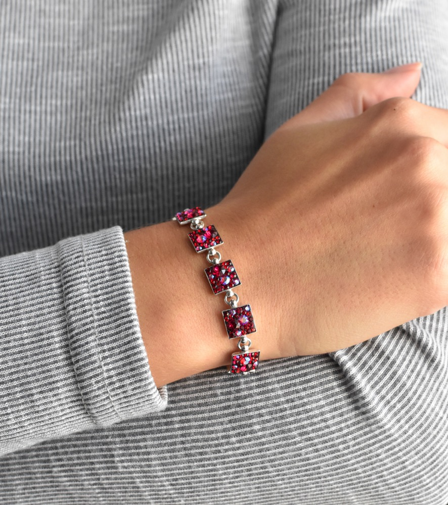 Parametre strieborného náramku so Swarovski kryštálmi červený 33047.3 cherry