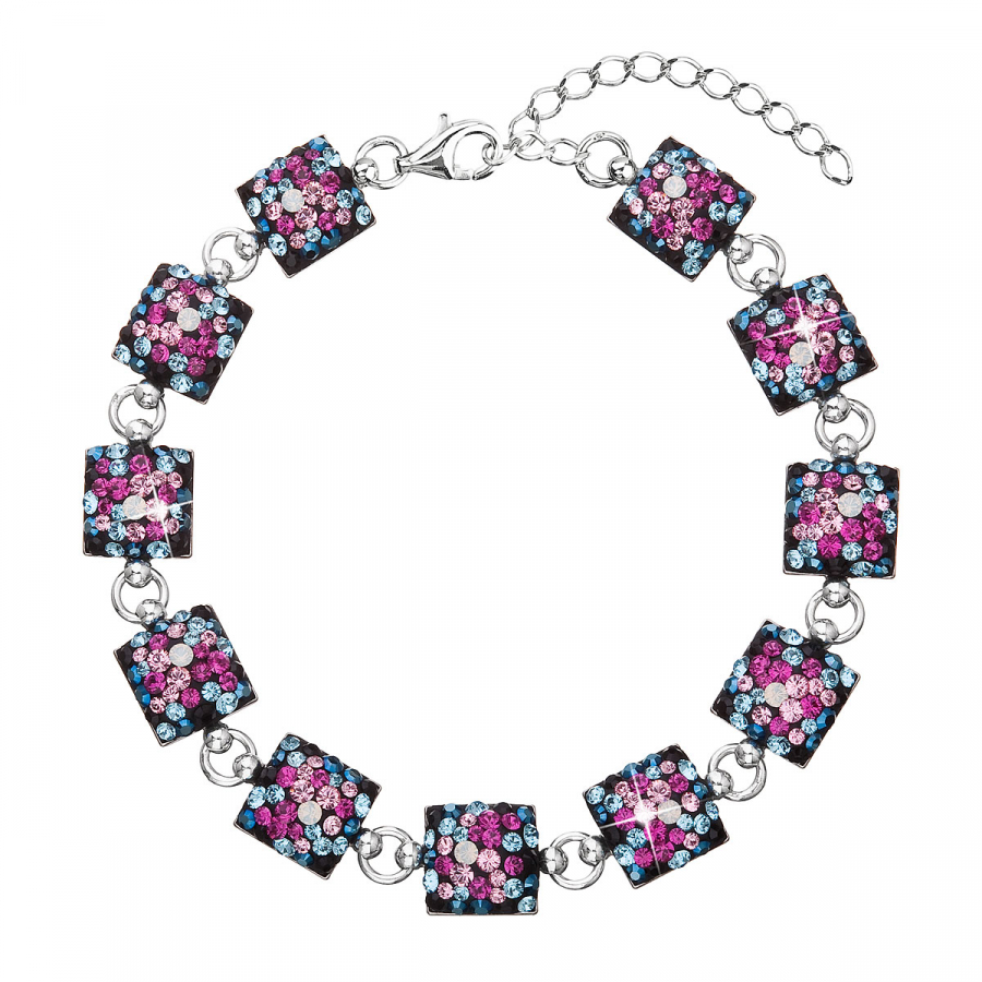 Strieborný náramok so Swarovski kryštálmi mix farieb 33047.4 galaxy