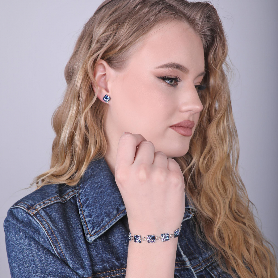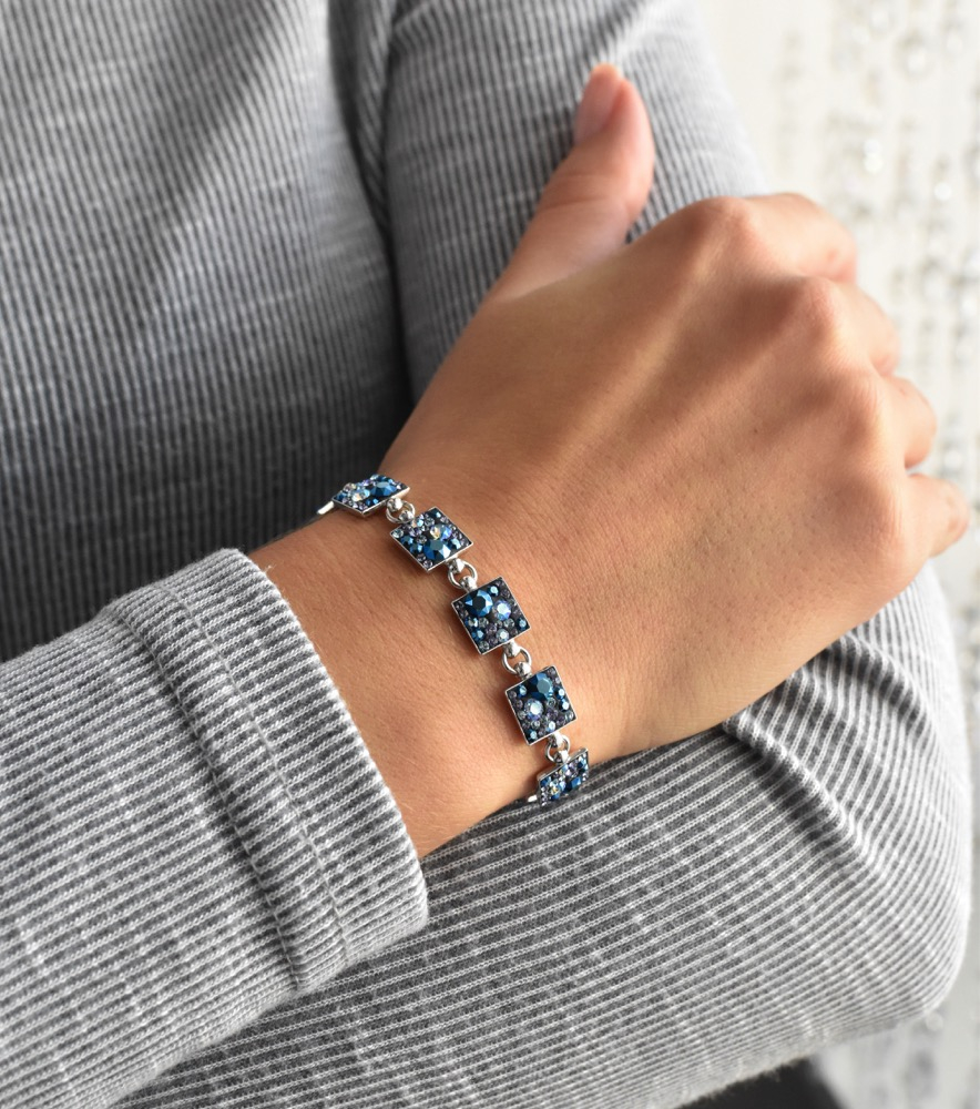 Strieborný náramok 33047.3 blue style je vyrobený zo striebra rýdzosti 925/1000, ktorého povrch bol ošetrený ródiom . Rhodium šperk ochráni proti sčernaniu, zožltnutiu aj poškriabaniu. Náramok je zložený z niekoľkých strieborných štvorčekov, ktoré sú bohato vysadené Swarovski kryštálmi v rôznych farbách. Keďže náramok neobsahuje prídavok niklu , môžu ho bez obáv z alergickej reakcie nosiť aj alergici.