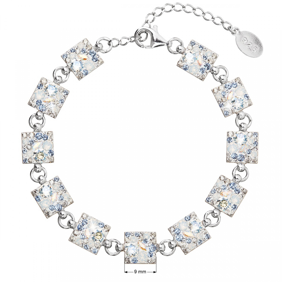 Strieborný náramok 33047.3 light sapphire je vyrobený zo striebra rýdzosti 925/1000, ktorého povrch bol ošetrený ródiom . Rhodium šperk ochráni proti sčernaniu, zožltnutiu aj poškriabaniu. Náramok je zložený z niekoľkých strieborných štvorčekov, ktoré sú bohato vysadené Swarovski kryštálmi v rôznych farbách. Keďže náramok neobsahuje prídavok niklu , môžu ho bez obáv z alergickej reakcie nosiť aj alergici.