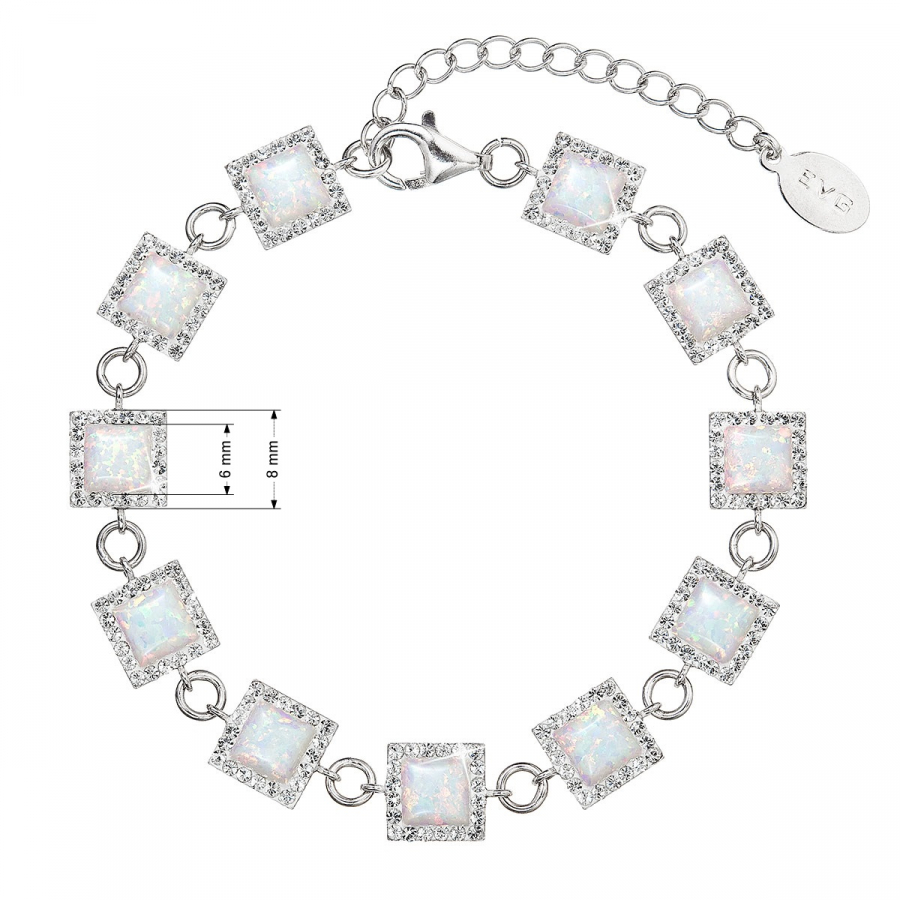 Strieborný náramok so syntetickým opálom a kryštálmi Preciosa biely štvorec 33047.1 white