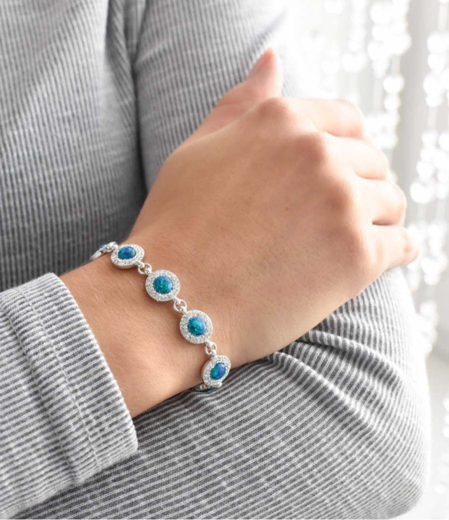 - náramok zo strieborných koliesok s opálmi a Preciosa kryštály