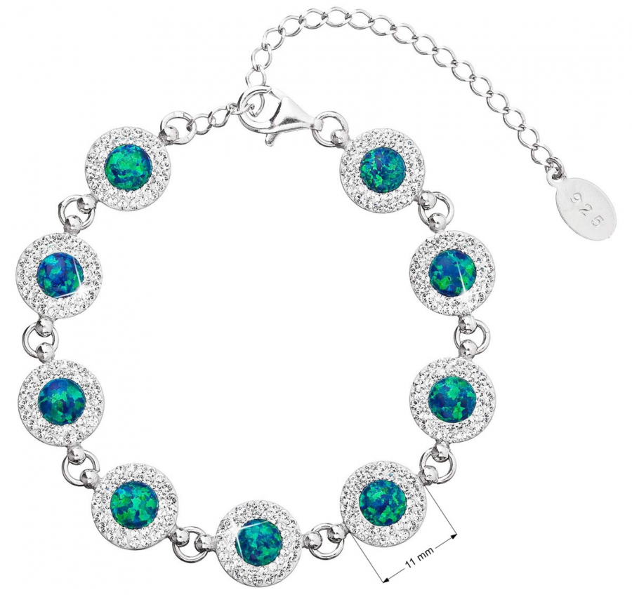 Parametre strieborného náramku so syntetickým opálom a kryštálmi Preciosa zelený 33105.1