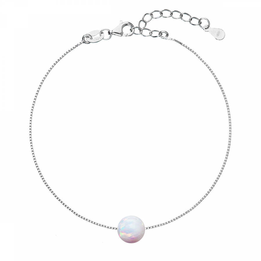 Strieborný náramok so syntetickým opálom biely okrúhly 13019.1