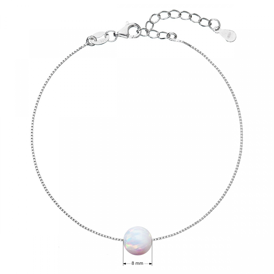Parametre strieborného náramku so syntetickým opálom biely okrúhly 13019.1
