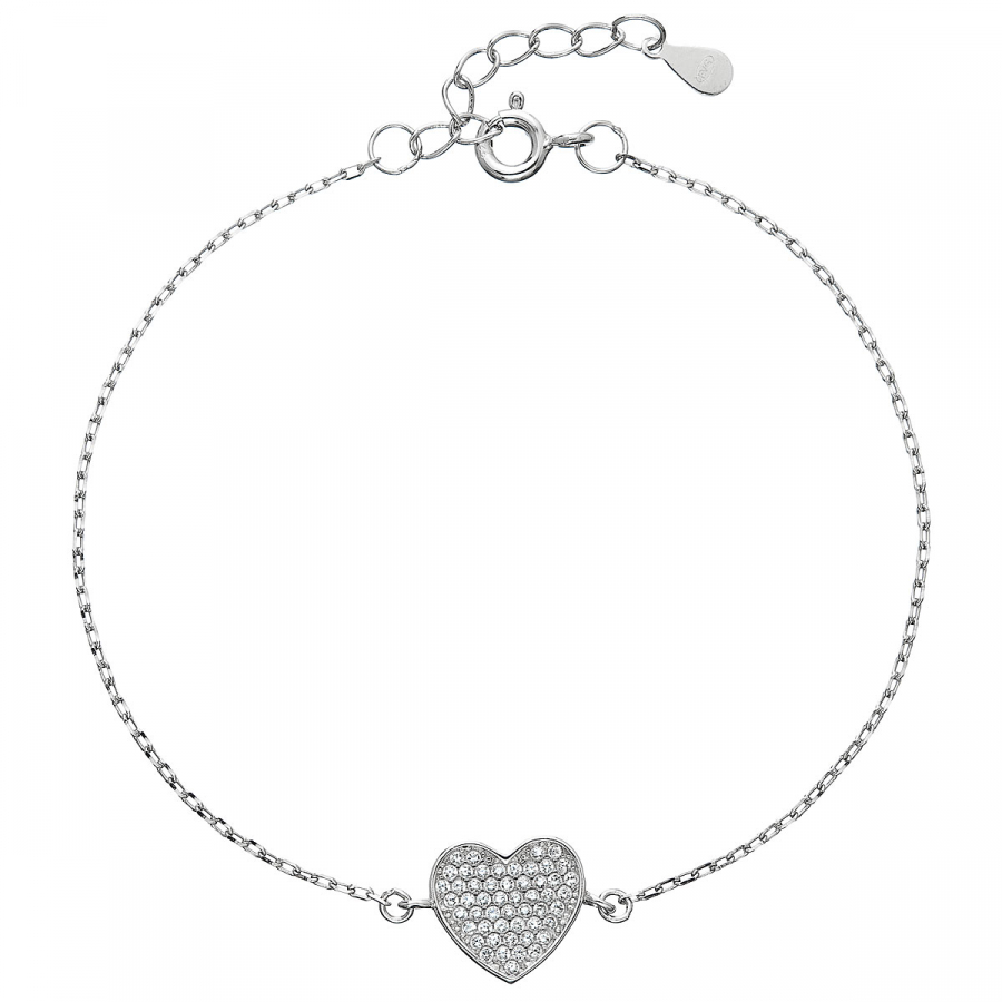 Náramok 13007.1 vyrábame zo striebra rýdzosti 925/1000, ktorého povrch ošetrujeme ródiom . Rhodium šperk ochráni proti sčernaniu, zožltnutiu aj poškriabaniu. Náramok zdobí veľké srdiečko ozdobené bielymi zirkónmi.