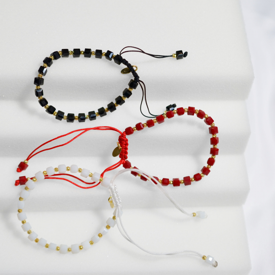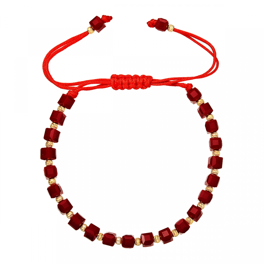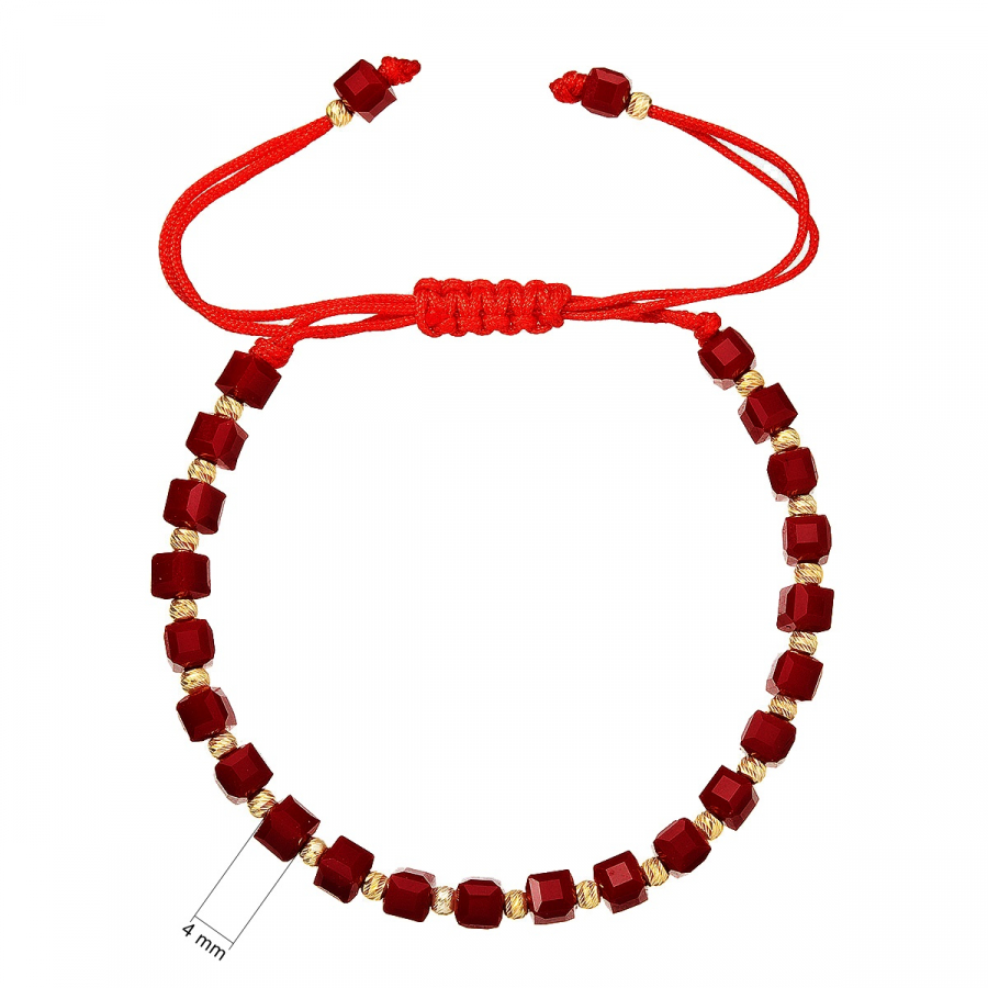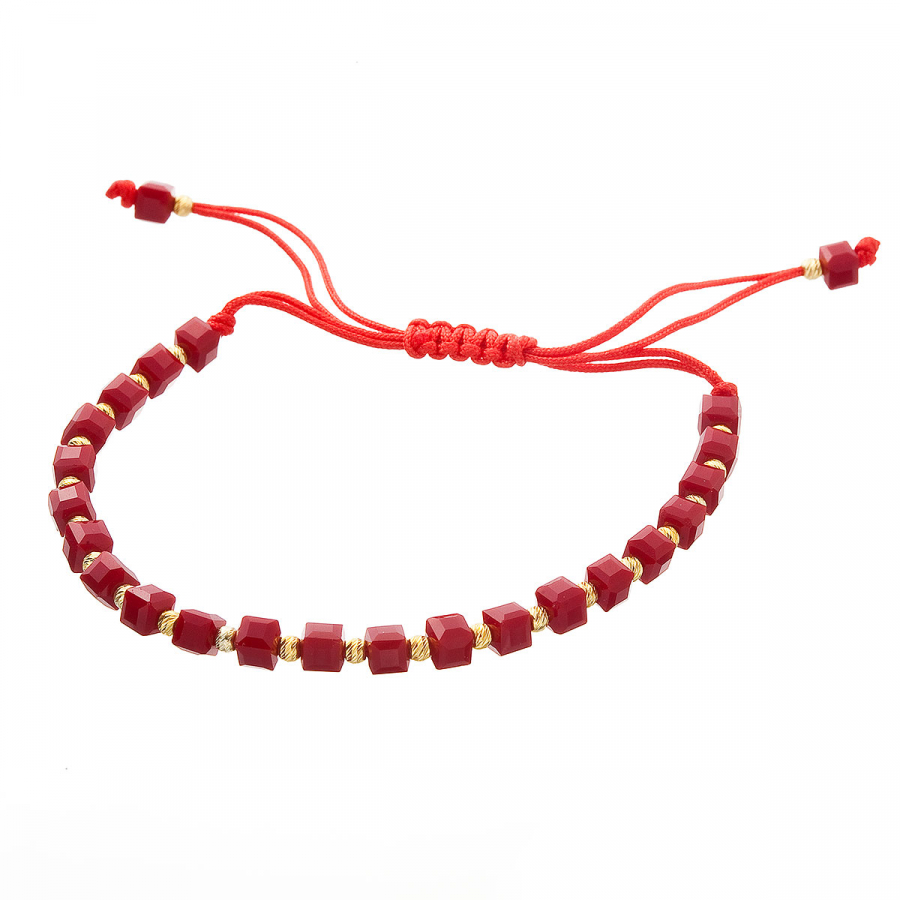 Ohnivá elegancia v červenom prevedení . Tento výrazný korálkový náramok v sebe spája trblietavé červené fazetované korálky so zlatými prvkami, čím vytvára pôsobivú kombináciu plnú vášne a života. Pozlátené strieborné guličky medzi korálkami a pliešok s puncom dodávajú šperku sofistikovaný nádych luxusu. Vďaka praktickej textilnej šnúrke s nastaviteľnou dĺžkou 13-26 cm si môžete náramok prispôsobiť presne podľa svojich predstáv. Použité striebro rýdzosti 925/1000 s ochrannou vrstvou ródia zaisťuje dlhotrvajúcu krásu šperku bez sčernania či poškriabania. Náramok neobsahuje nikel , je teda vhodný aj pre citlivú pokožku.