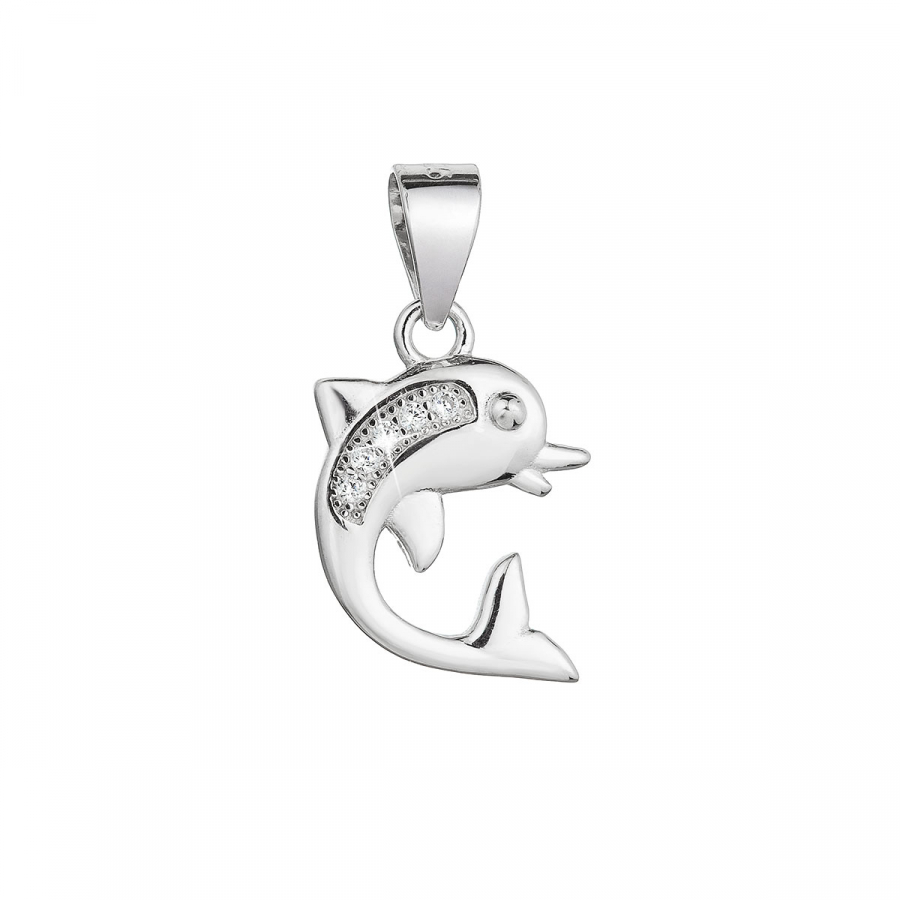 Strieborný prívesok delfín so zirkónmi 14014.1