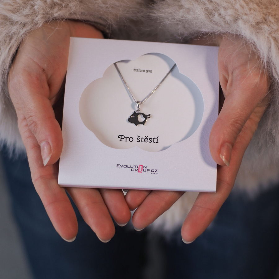 Obdarujte seba alebo svoju milovanú osobu týmto roztomilým príveskom v tvare malého pašíka so srdiečkom. Prasiatko symbolizuje šťastie a hojnosť. Či už ho nosíte ako roztomilý doplnok alebo pôvabný talizman, tento prívesok rozhodne prinesie úsmev na tváre svojim neodolateľne rozkošným vzhľadom.