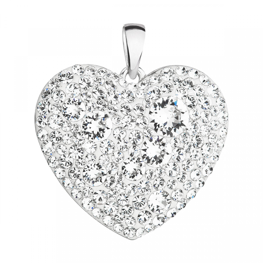 Strieborný prívesok s kryštálmi Swarovski biele srdce 34243.1