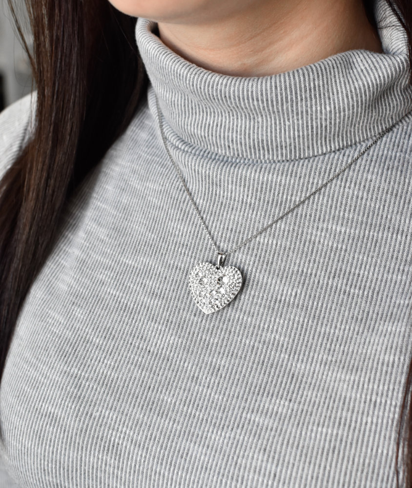 Srdiečko je vysadené Swarovski kryštálmi v bielej farbe.