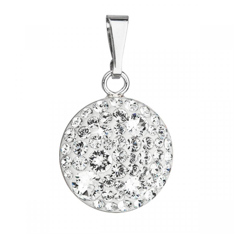 Strieborný prívesok s kryštálmi Swarovski biely okrúhly 34225.1
