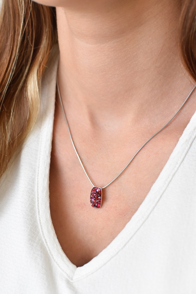 Parametre strieborného prívesku s kryštálmi Swarovski mix farieb obdĺžnik 34194.3 cherry