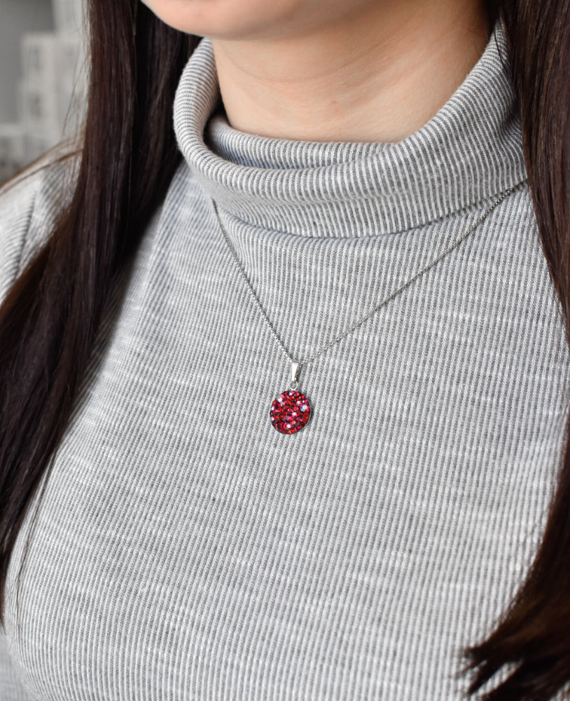 Strieborný okrúhly prívesok 34225.3 má priemer 15 mm a je zdobený mnohými malými okrúhlymi Swarovski kryštálmi v červenej farbe. Na prívesok bolo použité striebro rýdzosti 925/1000, ktorého povrch prešiel úpravou ródiom. Rhodium šperk ochráni proti sčernaniu, zožltnutiu alebo poškriabaniu. Prívesok neobsahuje nikel , a tak ho môžu bez obáv nosiť aj alergici. Prívesok 34225.3 cherry s kryštálmi Swarovski pre vás ručne vyrobili naše šikovné šperkárky v Jablonci nad Nisou. Poctivú ručnú prácu vám doložíme pečaťou kvality , ktorú šperk obsahuje. O pravosti striebra a Swarovski kryštálov vás presvedčí certifikát pravosti , ktorý je k výrobku priložený. Šperk vám zadarmo zabalíme do darčekovej krabičky.