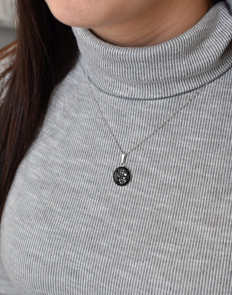 Strieborný prívesok s kryštálmi Swarovski čierny okrúhly 34225.5 hematite