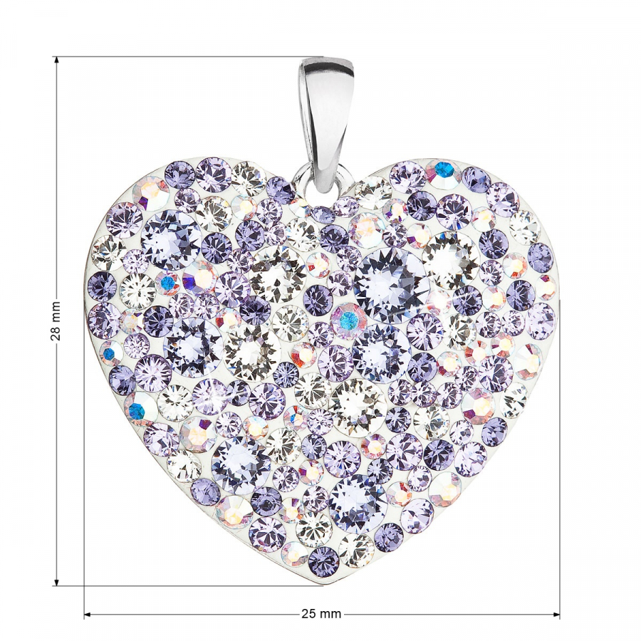 Strieborný prívesok s kryštálmi Swarovski mix farieb srdca 34243.3 violet