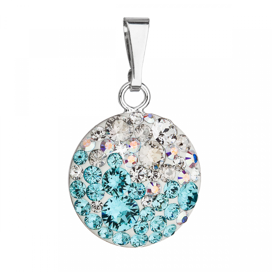 Strieborný prívesok s kryštálmi Swarovski modrý okrúhly 34225.3 light turquoise