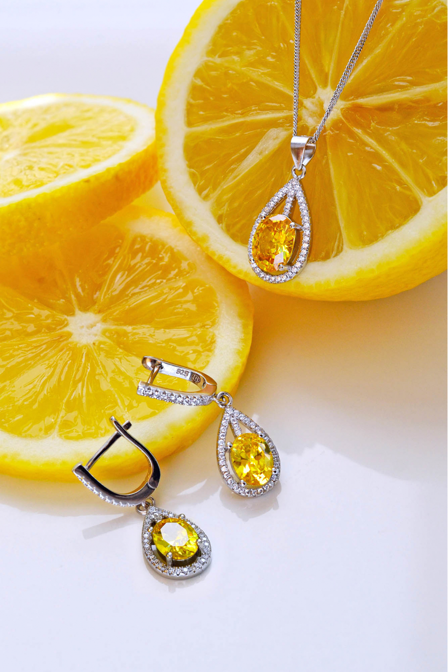 Strieborný prívesok slza žltý zirkón 14034.3 citrine