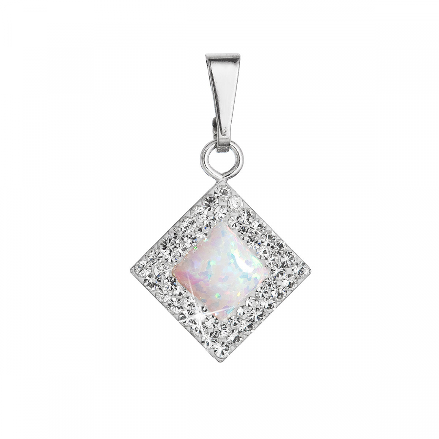 Strieborný prívesok so syntetickým opálom a kryštálmi Preciosa biely kosoštvorec 34260.1 white
