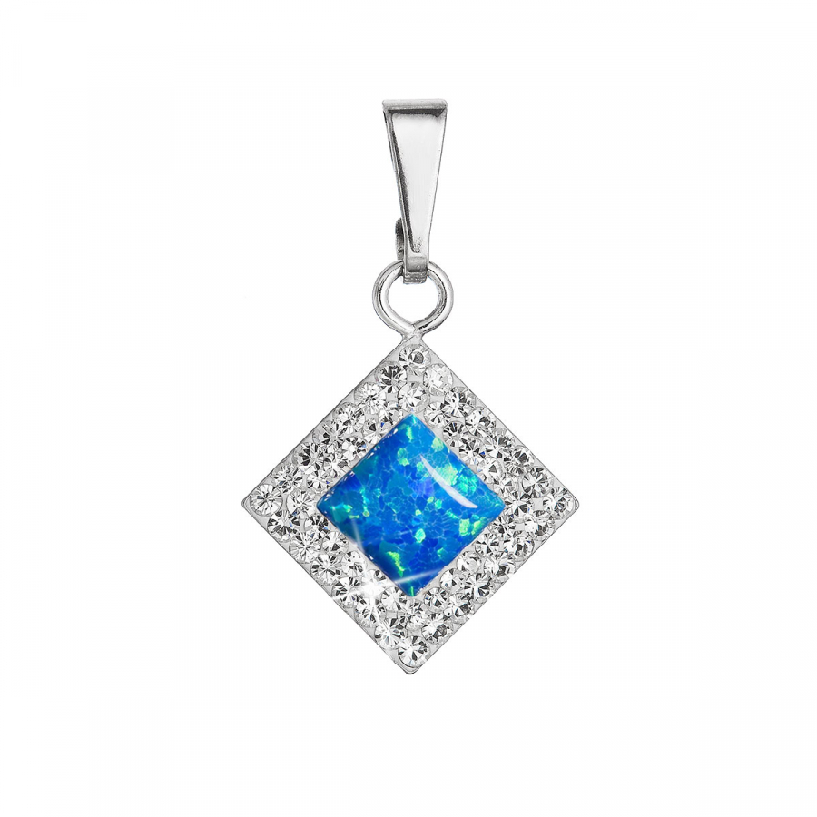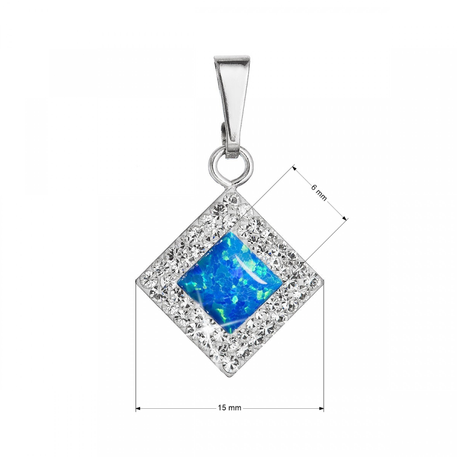 Strieborný prívesok so syntetickým opálom a kryštálmi Preciosa modrý kosoštvorec 34260.1 blue