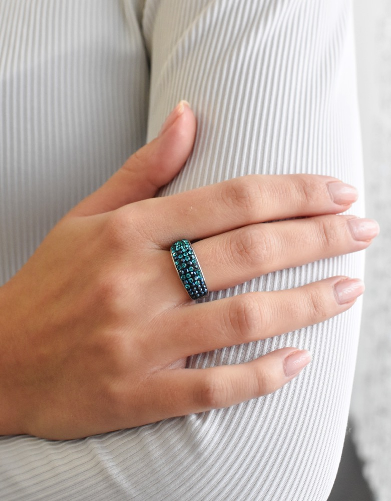 Strieborný prsteň s krištáľmi mix farieb zelený 35027.3 magic green