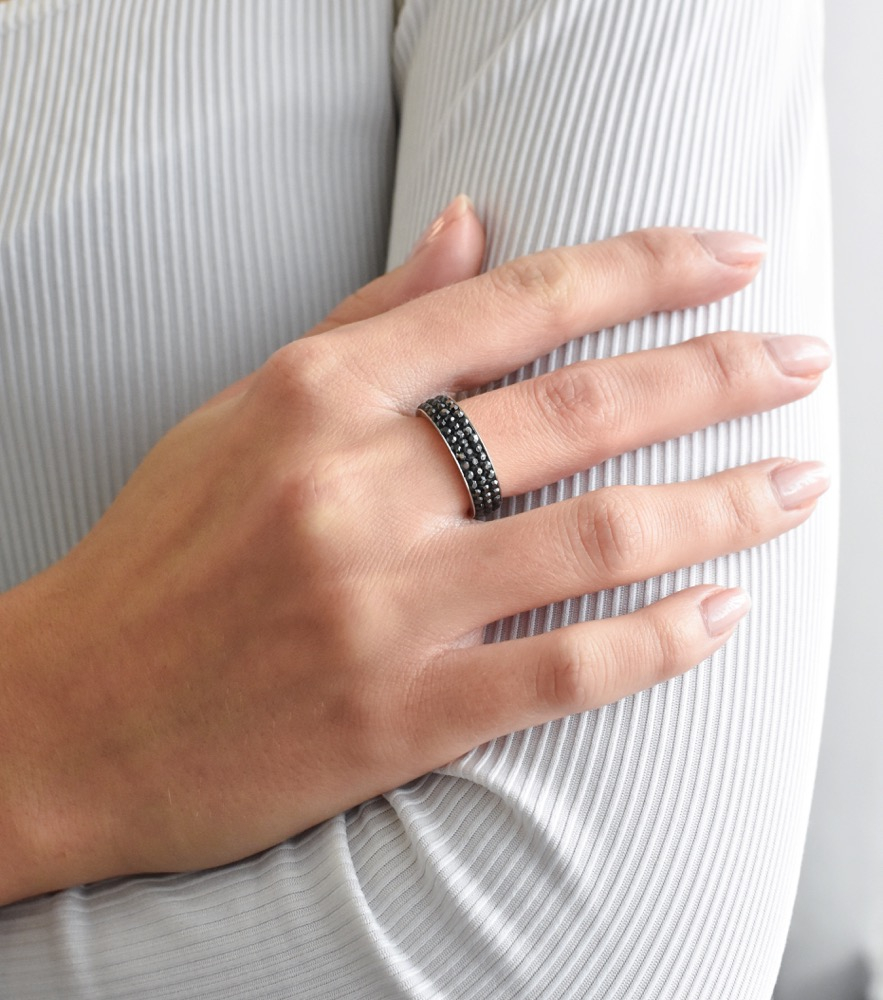 Strieborný prsteň s krištáľmi Swarovski čierny 35001.5