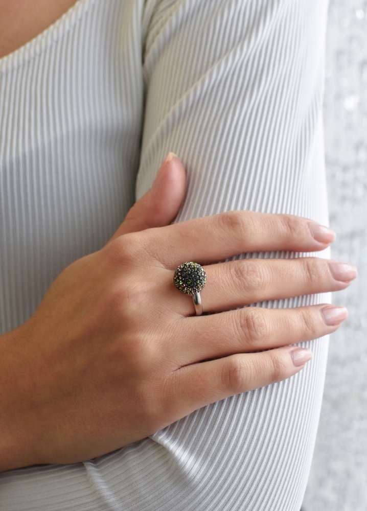 Strieborný prsteň s krištáľmi zelená hrče 735013.5 vitrail medium