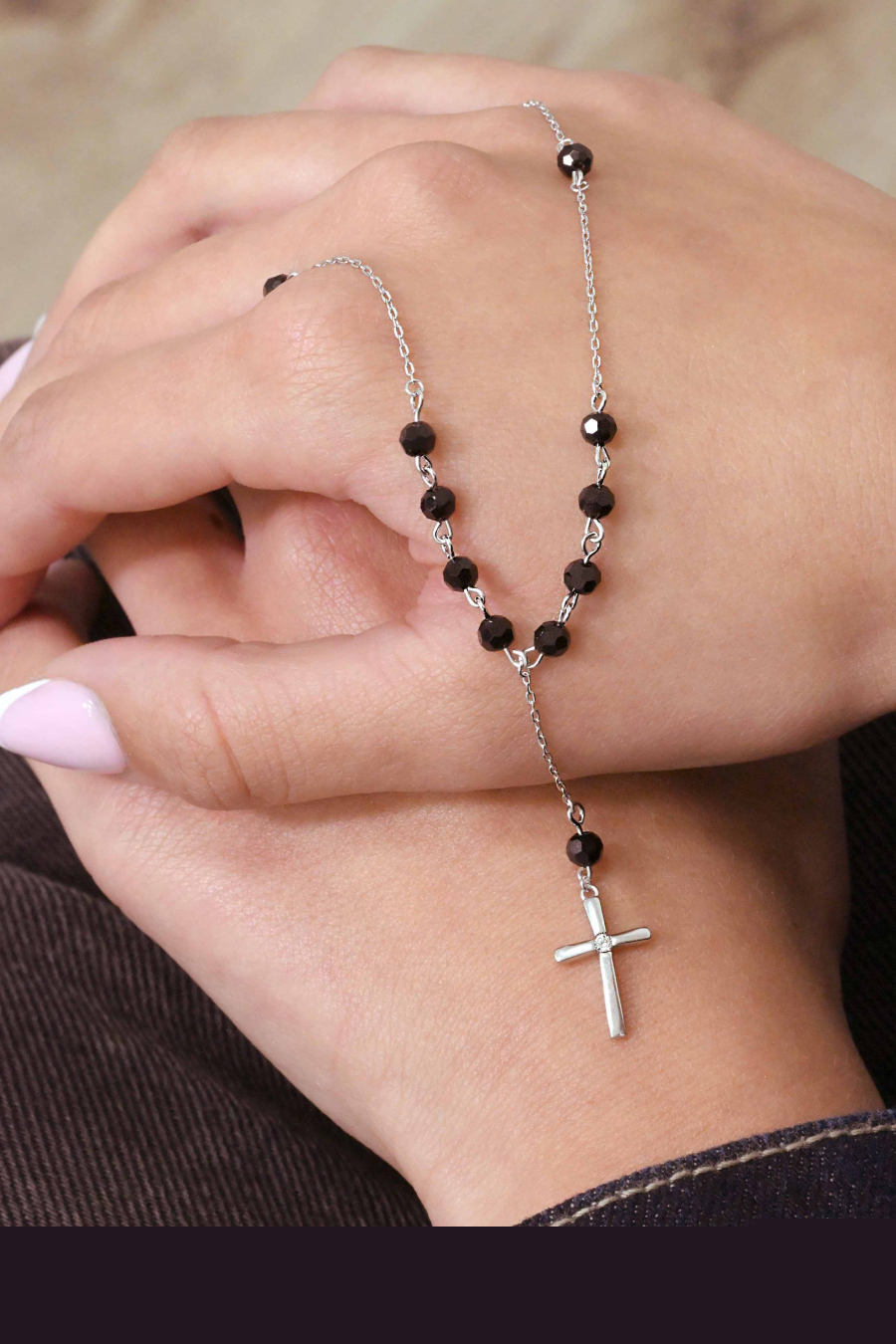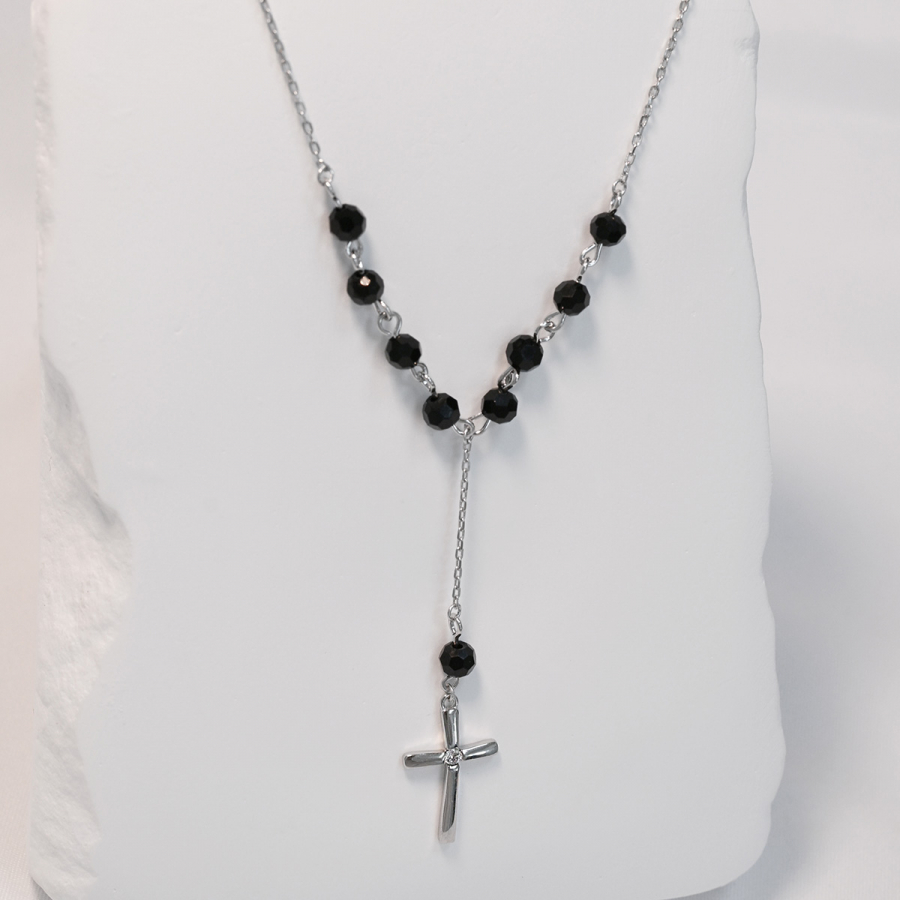 Strieborný ruženec s čiernymi zirkónmi 12174.3