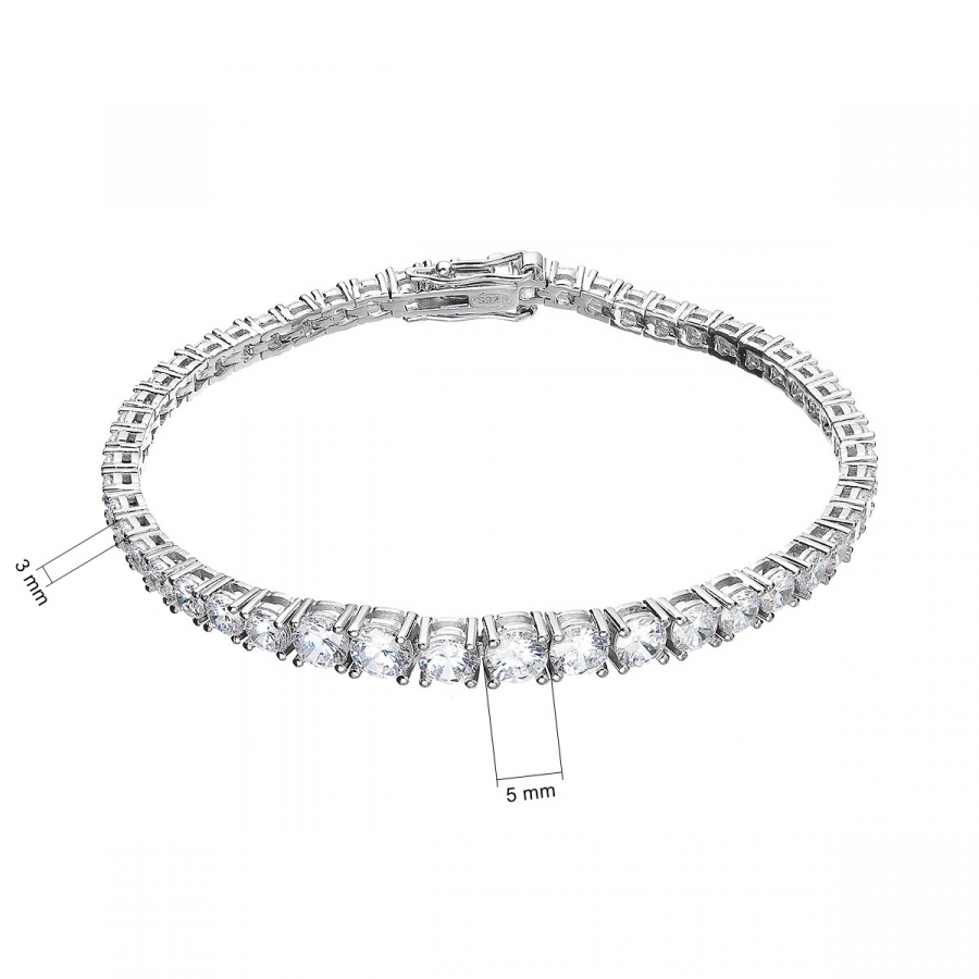 Tenisový náramok - jeden z najelegantnejších šperkov , Ktorý si môžete dopriať. Náramok je charakteristický nepretržitou reťazou kameňov, v tomto prípade trblietavých zirkónov, ktoré sú vsadené do základu zo striebra rýdzosti 925/1000. Guľaté z irkóny o veľkosti 3 - 5 mm vytvoria fascinujúcu svetelnú symfóniu na vašom zápästí.