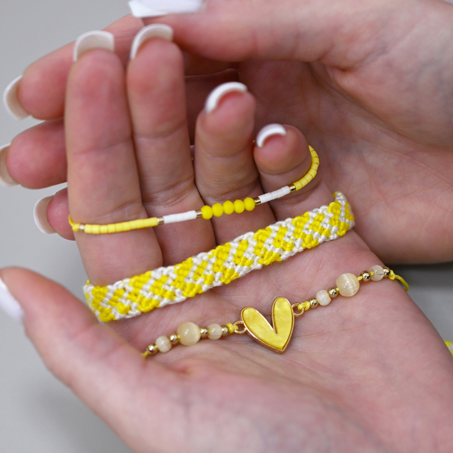 Sada 3 farebných náramkov - tri originálne kúsky, ktoré spolu nádherne ladia. Každý náramok je vzhľadovo iný, môžete ich nosiť dohromady pre výrazný look alebo jednotlivo podľa nálady a outfitu. Ideálny doplnok, ktorý oživí každý outfit.