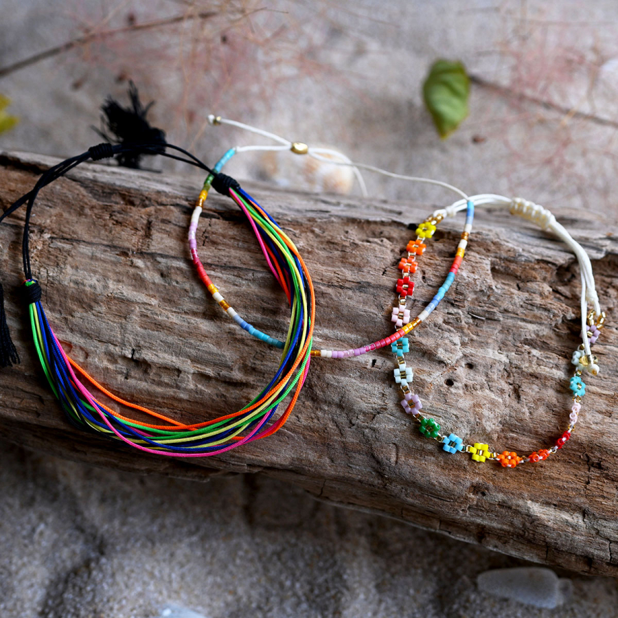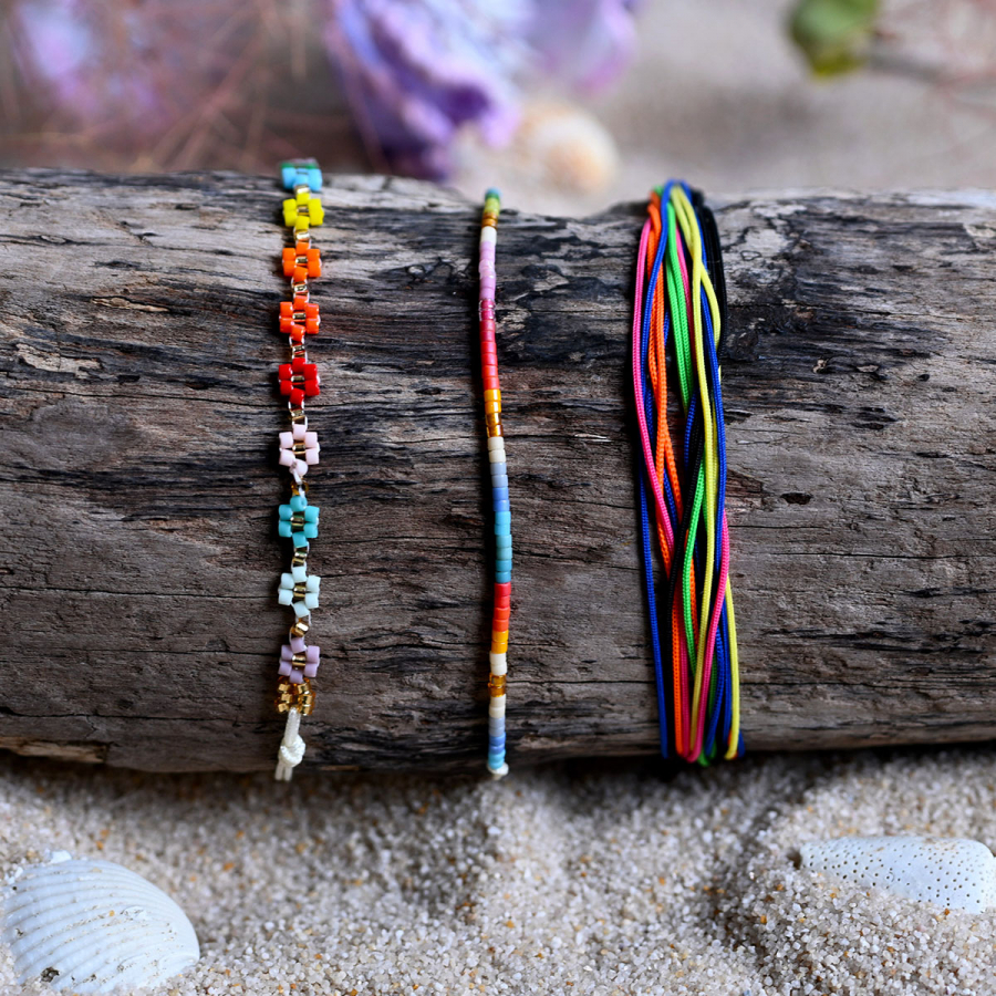 Sada 3 farebných náramkov - tri originálne kúsky, ktoré spolu nádherne ladia. Každý náramok je vzhľadovo iný, môžete ich nosiť dohromady pre výrazný look alebo jednotlivo podľa nálady a outfitu. Ideálny doplnok, ktorý oživí každý outfit.