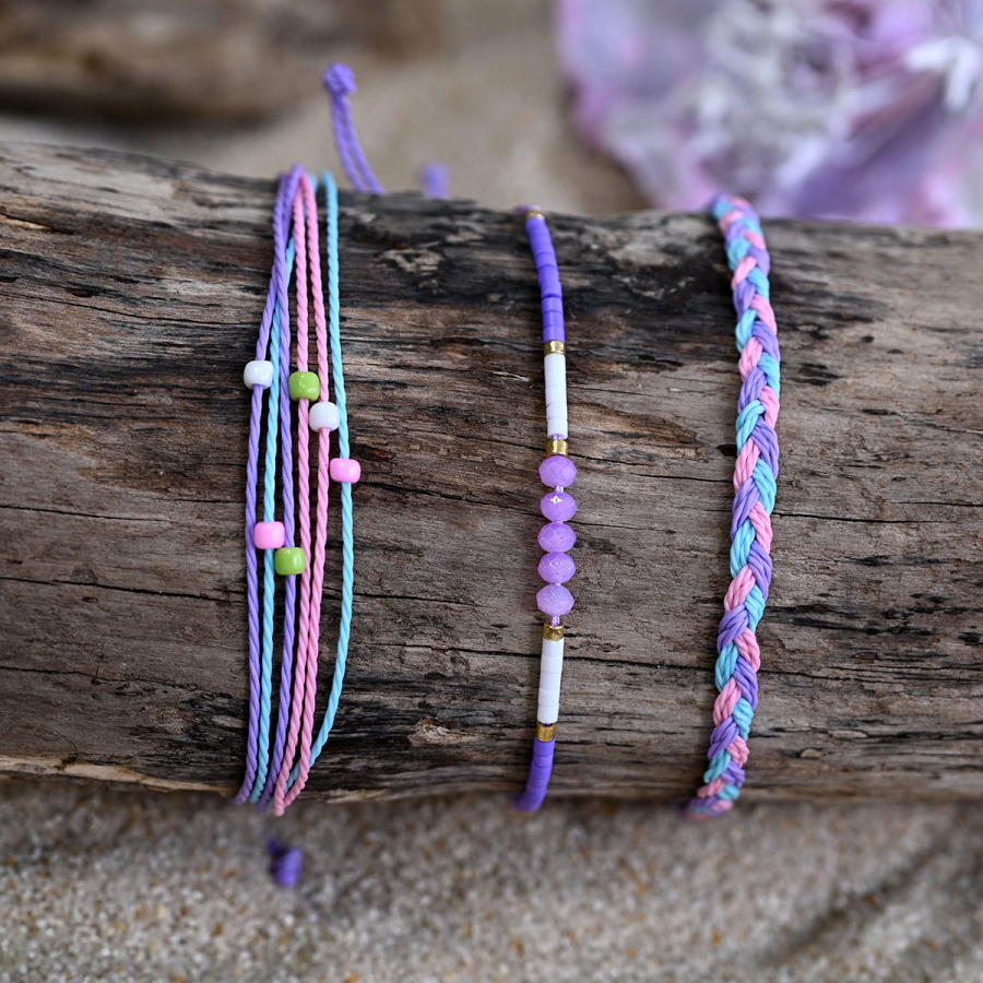 Sada 3 farebných náramkov - tri originálne kúsky, ktoré spolu nádherne ladia. Každý náramok je vzhľadovo iný, môžete ich nosiť dohromady pre výrazný look alebo jednotlivo podľa nálady a outfitu. Ideálny doplnok, ktorý oživí každý outfit.