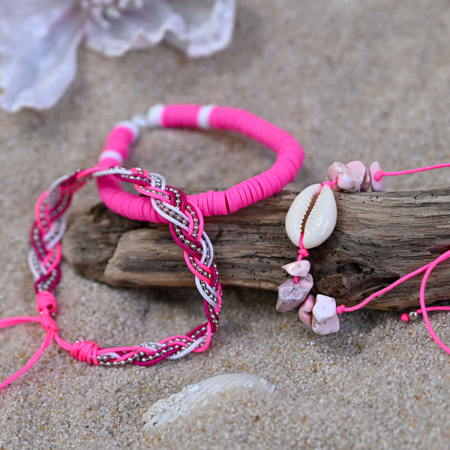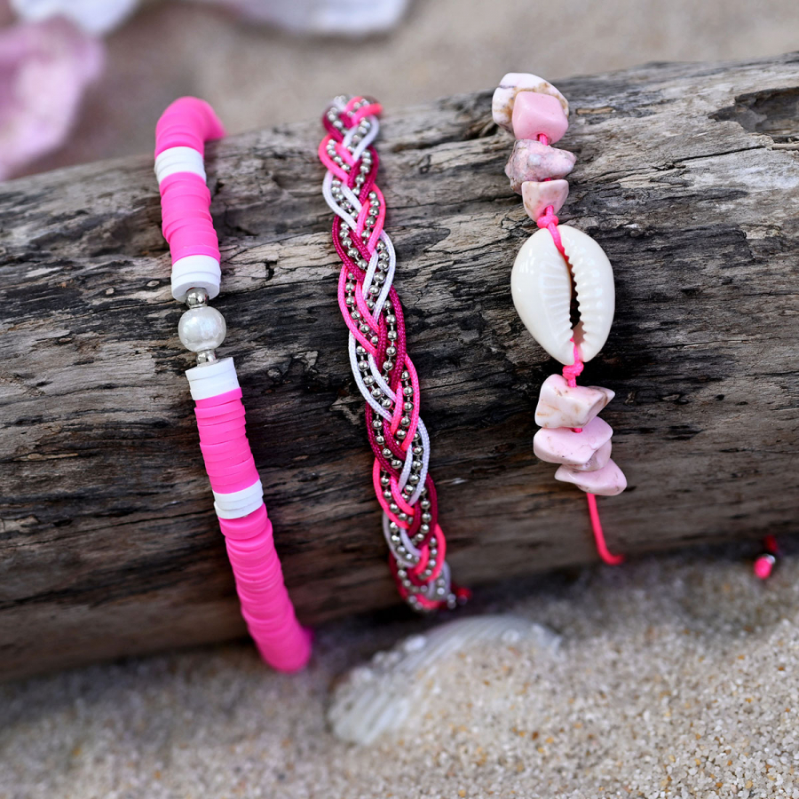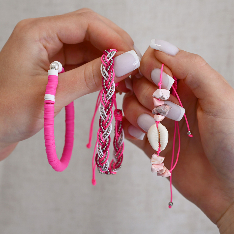 Sada 3 farebných náramkov - tri originálne kúsky, ktoré spolu nádherne ladia. Každý náramok je vzhľadovo iný, môžete ich nosiť dohromady pre výrazný look alebo jednotlivo podľa nálady a outfitu. Ideálny doplnok, ktorý oživí každý outfit.