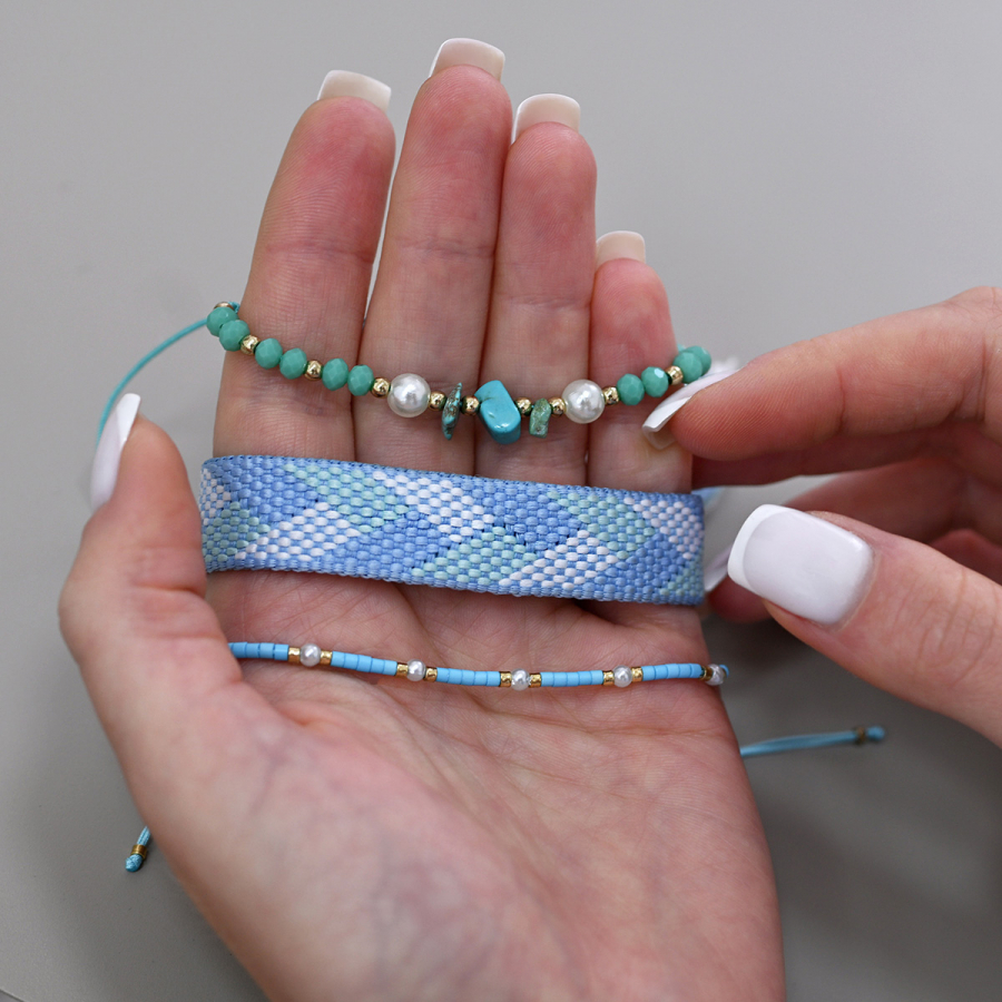 Sada 3 farebných náramkov - tri originálne kúsky, ktoré spolu nádherne ladia. Každý náramok je vzhľadovo iný, môžete ich nosiť dohromady pre výrazný look alebo jednotlivo podľa nálady a outfitu. Ideálny doplnok, ktorý oživí každý outfit.