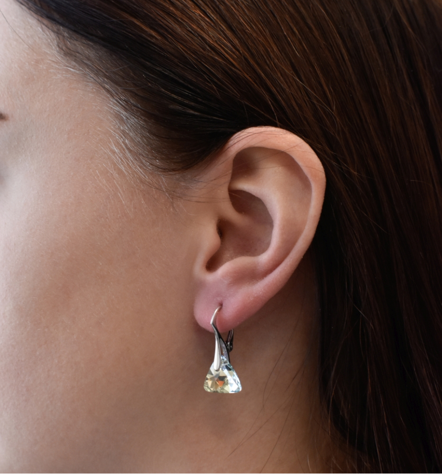 Súprava 39174.2 obsahuje náušnice a prívesok v tvare trojuholníčkov. Šperky sú vyrobené zo striebra rýdzosti 925/1000, ktoré prešlo povrchovou úpravou ródiom. Ródium chráni šperk proti sčerneniu, zožltnutiu i poškriabaniu. Prívesok aj náušnice sú zdobené bielymi Swarovski kryštálmi s AB efektom, vďaka ktorému sa šperk náhderne blýska. Náušnice majú zapínanie na klapku. Keďže šperky neobsahujú žiadny prídavok niklu , môžu ich bez obáv nosiť aj alergici.