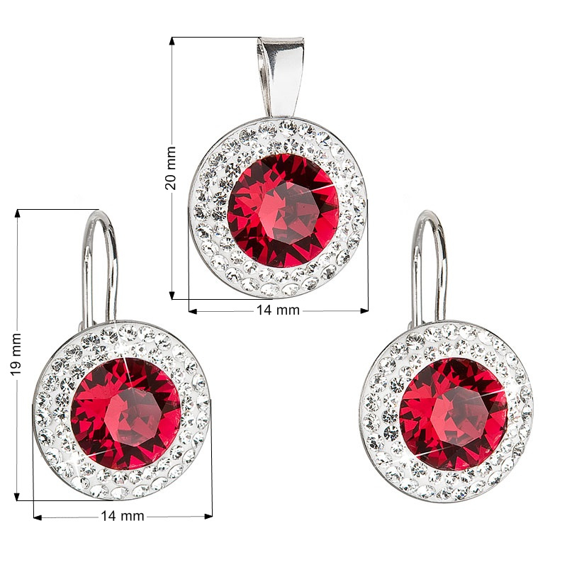 Parametre sady šperkov s kryštálmi Swarovski náušnice a prívesok červené okrúhle 39107.3