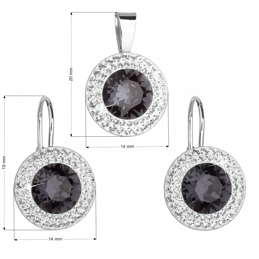 Parametre sady šperkov s kryštálmi Swarovski náušnice a prívesok čierne okrúhle 39107.3