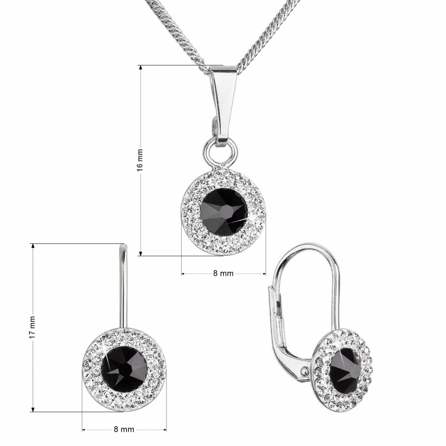 Parametre sady šperkov s kryštálmi Swarovski náušnice, retiazka a prívesok čierne okrúhle 39109.3 jet