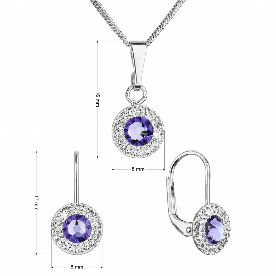 Parametre sady šperkov s kryštálmi Swarovski náušnice, retiazka a prívesok fialové okrúhle 39109.3 tanzanite