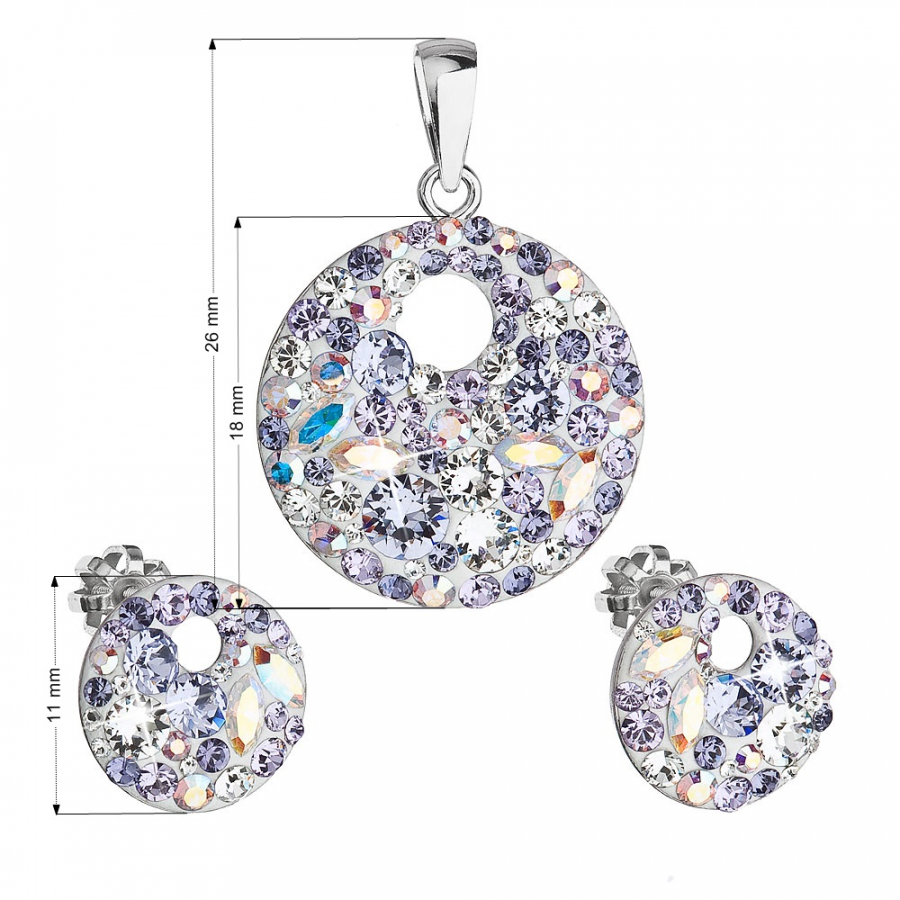 Parametre sady šperkov s kryštálmi Swarovski náušnice a prívesok mix fialovej okrúhle 39148.3 viole
