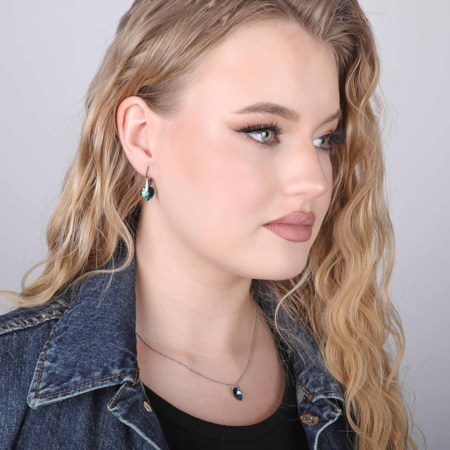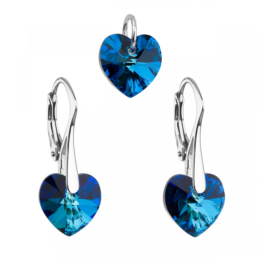 Parametre sady šperkov s kryštálmi Swarovski náušnice a prívesok modrá srdce 39003.5 bermuda blue