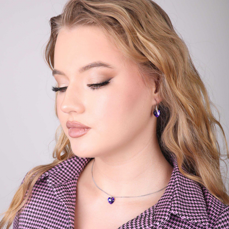 Parametre sady šperkov s kryštálmi Swarovski náušnice a prívesok modrá srdce 39003.5 heliotrope
