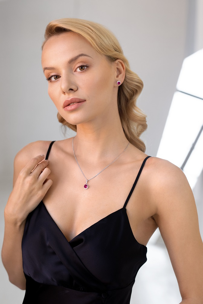 Sada 39352.3 fuchsia obsahuje náušnice kôstky a retiazku s príveskom. Šperky sú vyrobené zo striebra rýdzosti 925/1000, ktoré prešlo povrchovou úpravou ródiom. Ródium chráni šperk proti sčerneniu, zožltnutiu i poškriabaniu. Prívesok aj náušnice sú zdobené okrúhlym ružovým Swarovski kryštálom , ktorý je navyše olemovaný ešte malými trblietavými Swarovski kryštálmi v bielej farbe. Náušnice majú zapínanie na spoľahlivý balónik. Keďže šperky neobsahujú žiadny prídavok niklu , môžu ich bez obáv nosiť aj alergici.