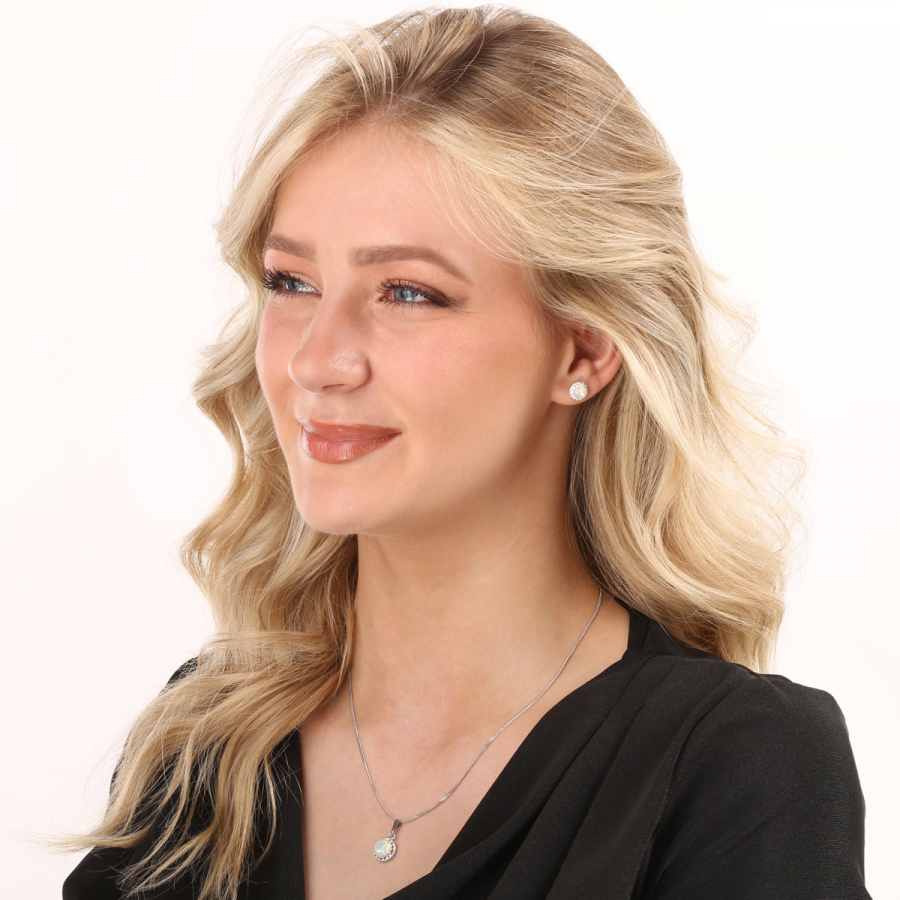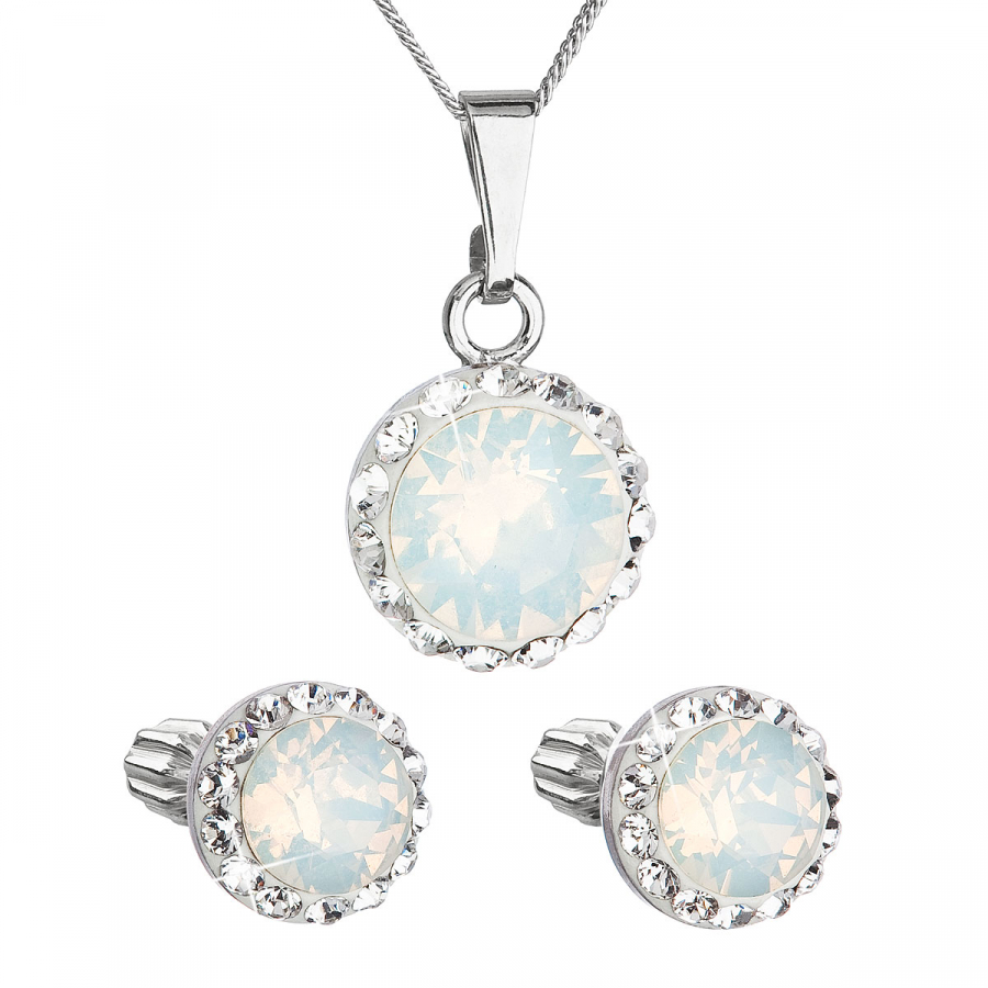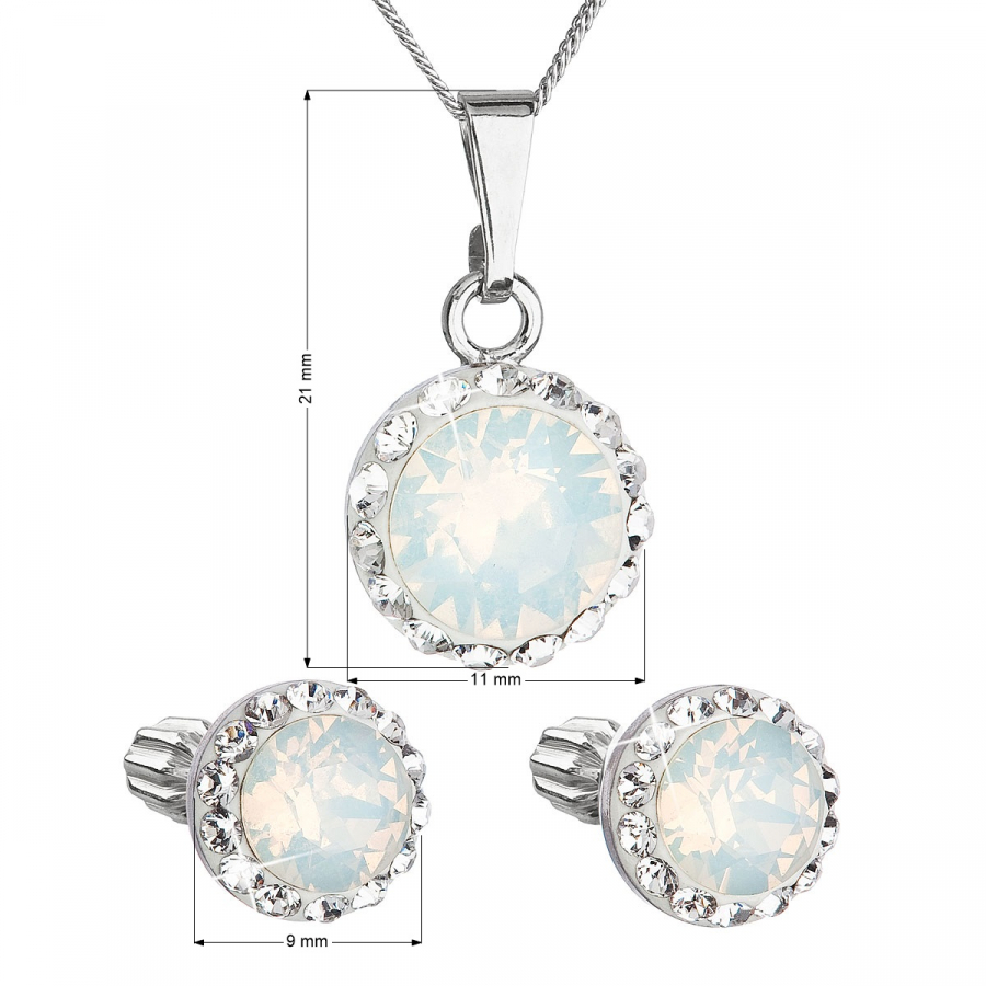 Parametre sady šperkov s kryštálmi Swarovski náušnice a prívesok biele opálové okrúhle 39352.7