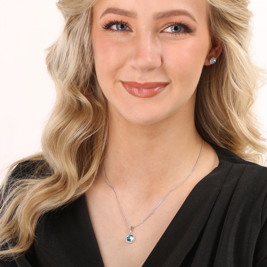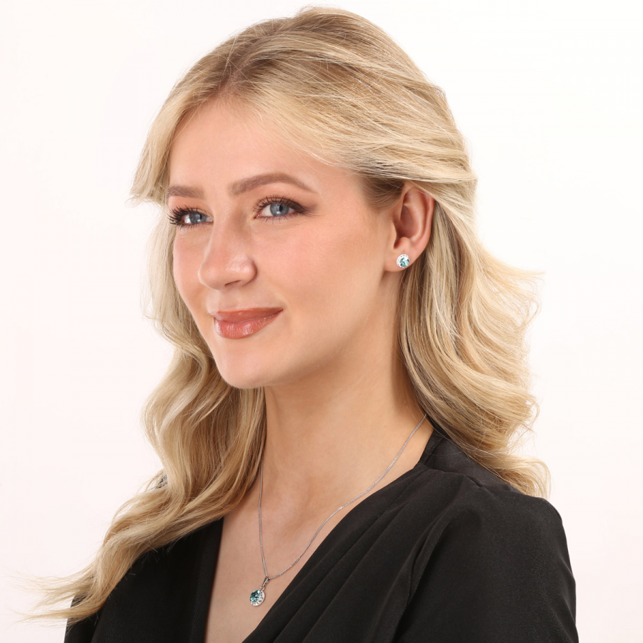 Sada 39352.3 obsahuje náušnice kôstky a retiazku s príveskom. Šperky sú vyrobené zo striebra rýdzosti 925/1000, ktoré prešlo povrchovou úpravou ródiom. Ródium chráni šperk proti sčerneniu, zožltnutiu i poškriabaniu. Prívesok aj náušnice sú zdobené okrúhlym modrým Swarovski kryštálom , ktorý je navyše olemovaný ešte malými trblietavými Swarovski kryštálmi v bielej farbe. Náušnice majú zapínanie na spoľahlivý balónik. Keďže šperky neobsahujú žiadny prídavok niklu , môžu ich bez obáv nosiť aj alergici.