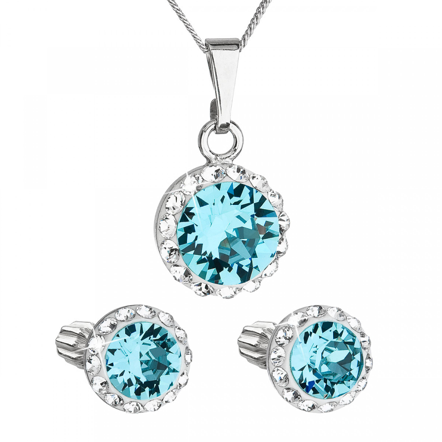 Parametre sady šperkov s kryštálmi Swarovski náušnice, retiazka a prívesok modrej okrúhle 39352.3