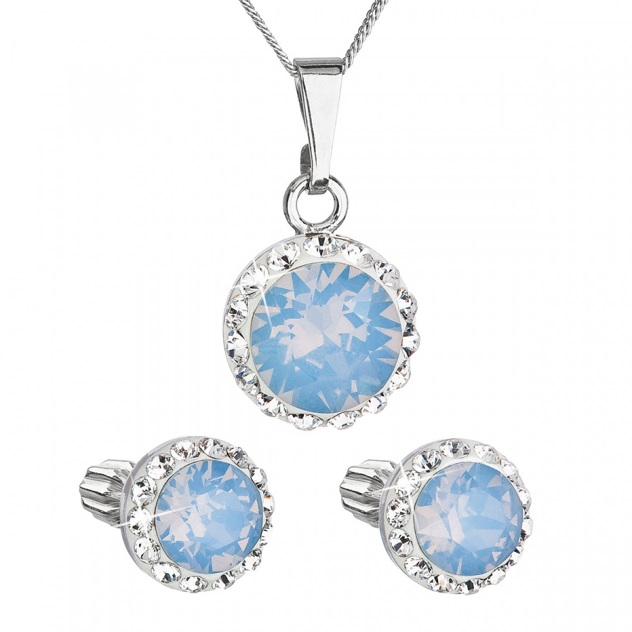 Súprava šperkov s kryštálmi Swarovski náušnice, retiazka a prívesok modré opálové okrúhle 39352.7