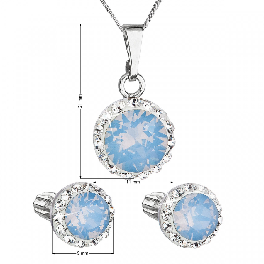 Parametre sady šperkov s kryštálmi Swarovski náušnice a prívesok modré opálové okrúhle 39352.7